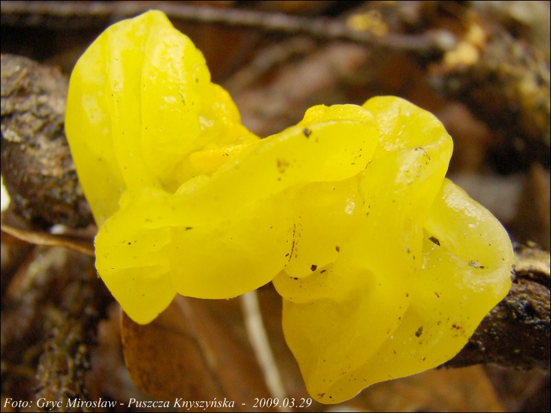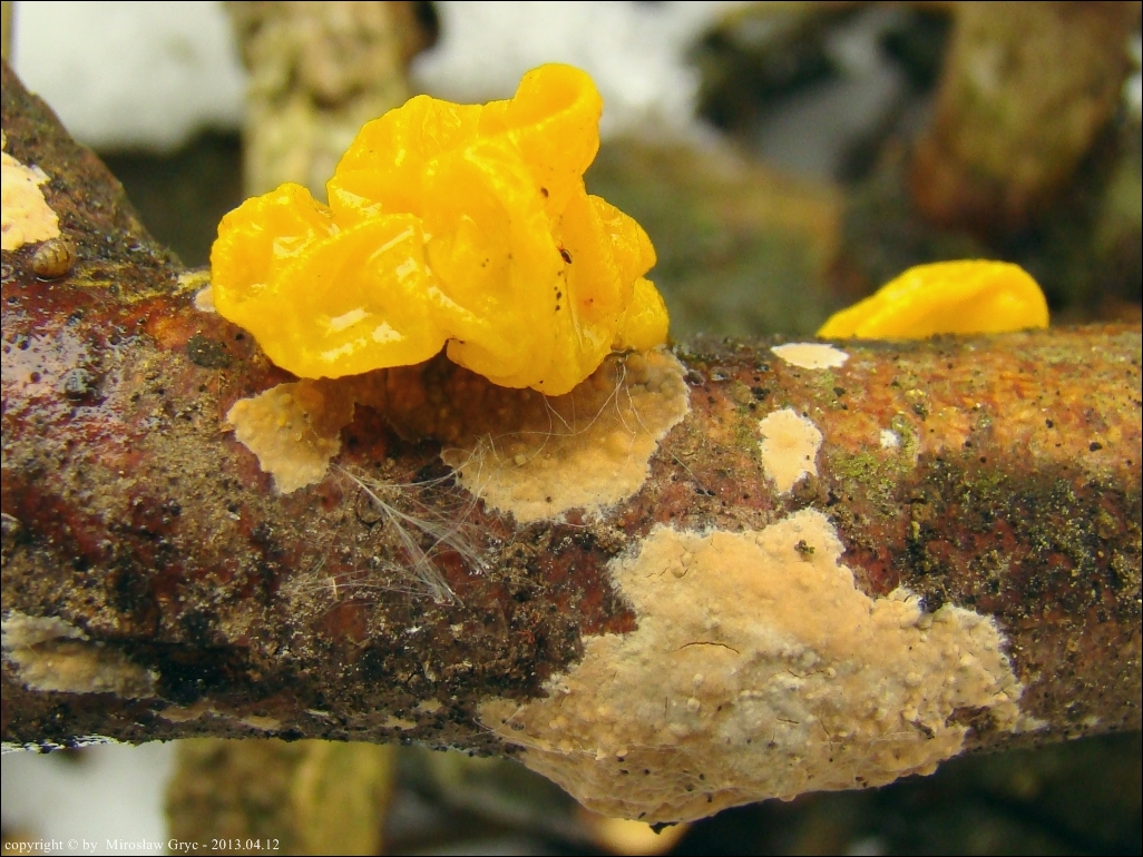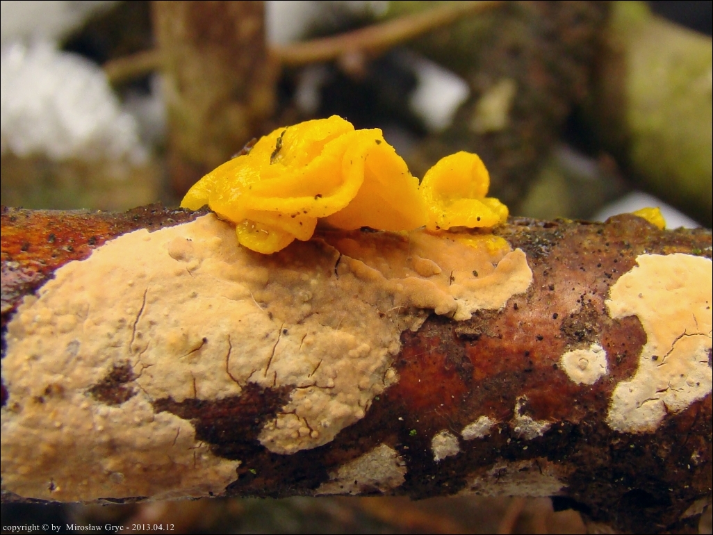Oprócz nich mamy jeszcze rzadką Tremella aurantia, odróżnienie od T. mesantrica po sąsiedztwie grzyba na którego grzybni pasożytuje.