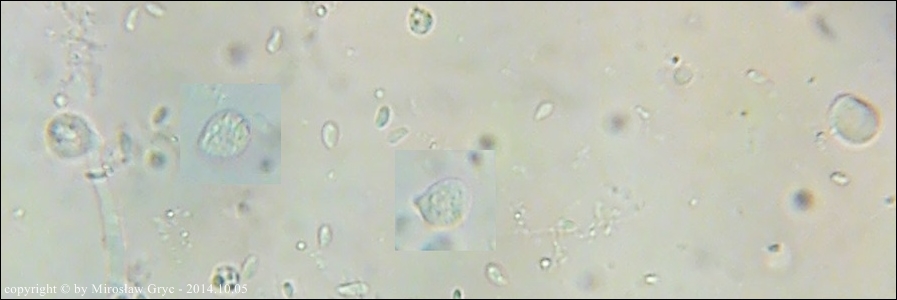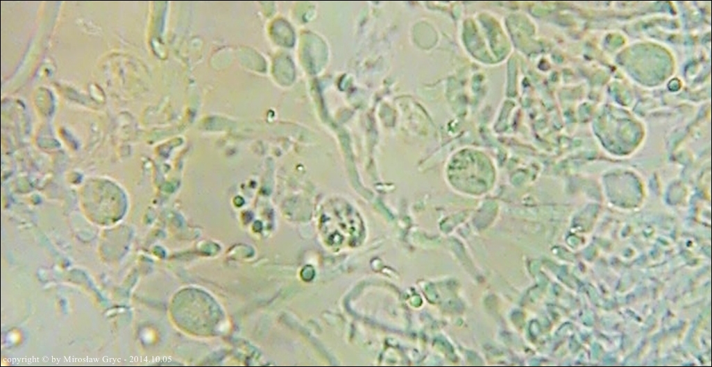 | 2019.12.16Ogrodniczki, | 1km E, las sosnowy.Owocniki w hymenium jakiegoś Poliporales . Numer wątku na Bio-forum: 1196.2.4.7. Mikroskopował Błażej Gierczyk. | |
