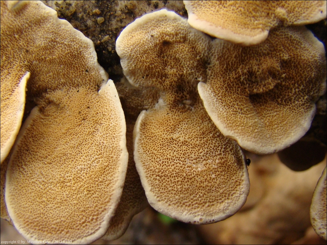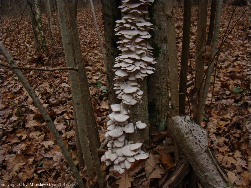 | ID: 252578 z dn. 2014.08.24 (ATPOL: GC-01) | Puszcza Knyszyńska, Pólko, gm. Supraśl. | Masowo na leżącym na ziemi konarze czeremchy. Stanowisko ujęte w pracy zespołowej: Grzyby Puszczy Knyszyńskiej - Anna Kujawa, Błażej Gierczyk, Mirosław Gryc, Marek Wołkowycki - 2019 rok. |