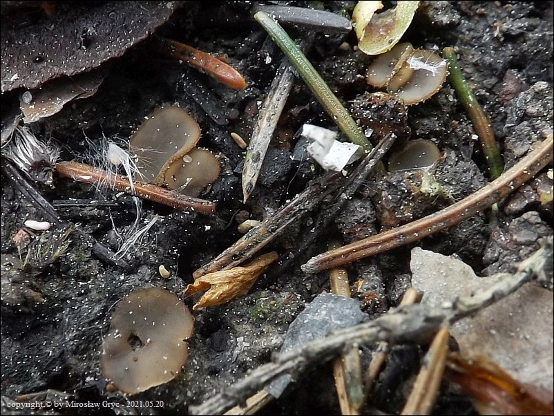 Substrat: Owocniki na węglu w miejscu dawniej palonego ogniska. Barwa owocników dość ciemna ale być może ze względu na dość duże nasłonecznienie stanowiska?.