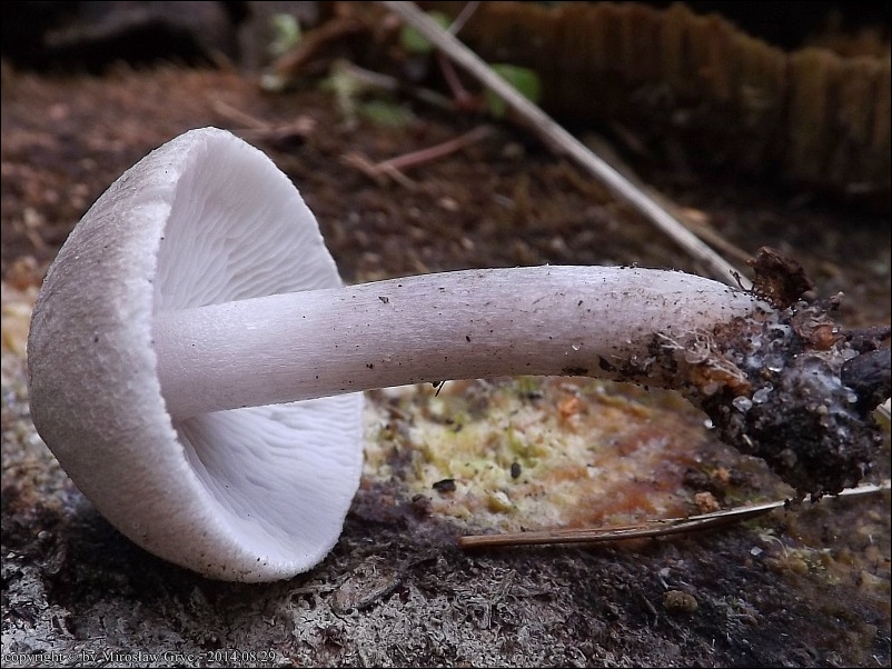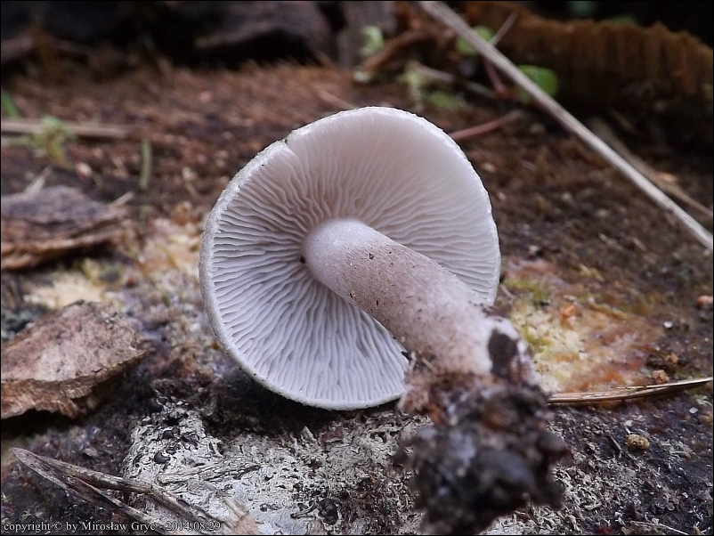 Substrat: Las mieszany, błotnista koleina, jeden owocnik na ziemi zmieszanej z dużą ilością resztek drewna.