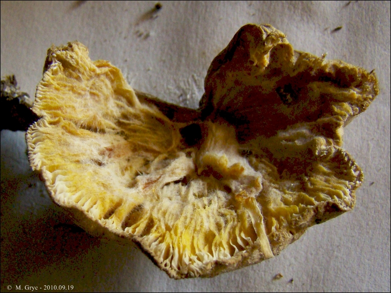 | ID: 170028 z dn. 2010.06.19 (ATPOL: GC-12) | Puszcza Knyszyńska, około 6 km. na południe od Supraśla. | Stary las mieszany, na poboczu drogi leśnej, bezpośrednio na ziemi, trzy owocniki tuż obok siebie. Stanowisko ujęte w pracy zespołowej: Grzyby Puszczy Knyszyńskiej - Anna Kujawa, Błażej Gierczyk, Mirosław Gryc, Marek Wołkowycki - 2019 rok. |