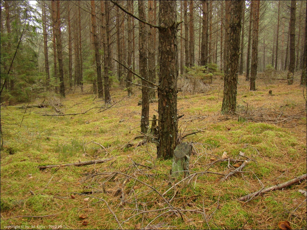 Największe skupisko owocników w stosunkowo jeszcze młodym lesie sosnowym, podłoże piaszczyste.