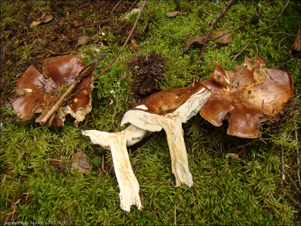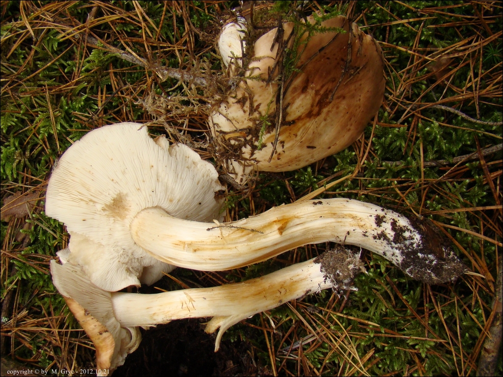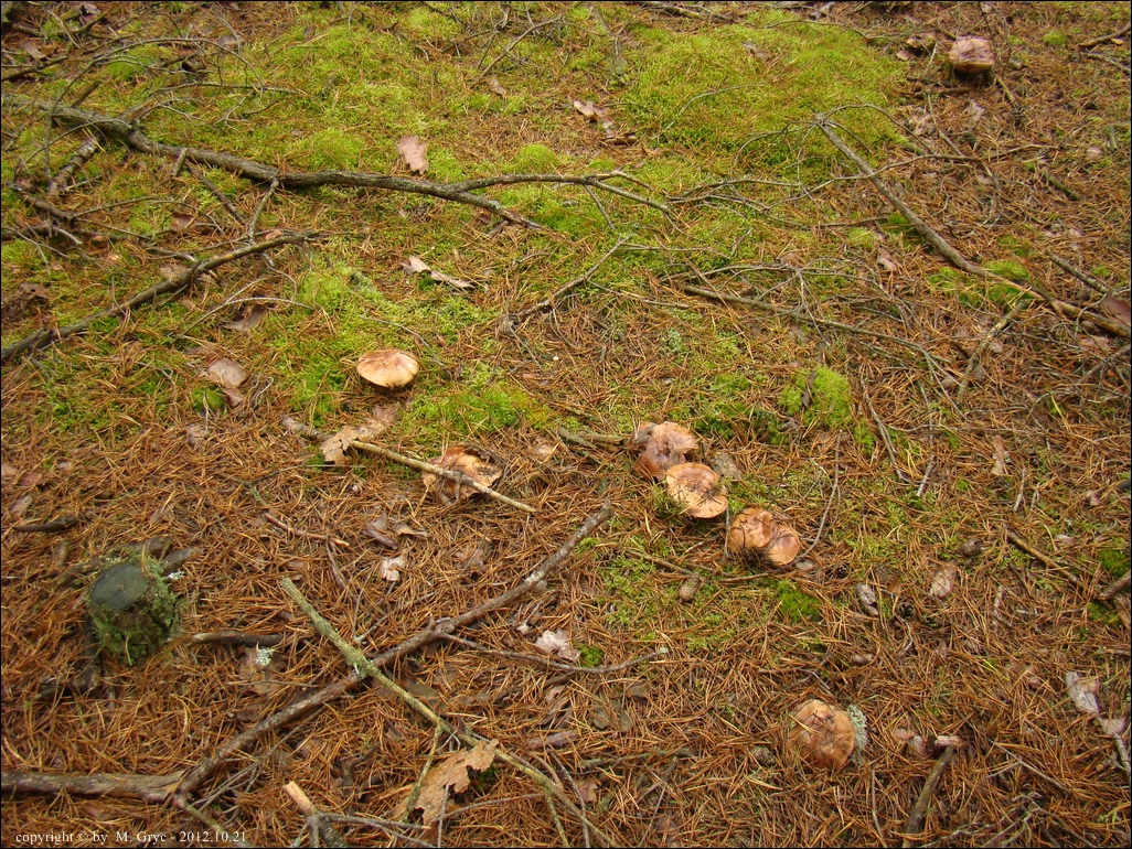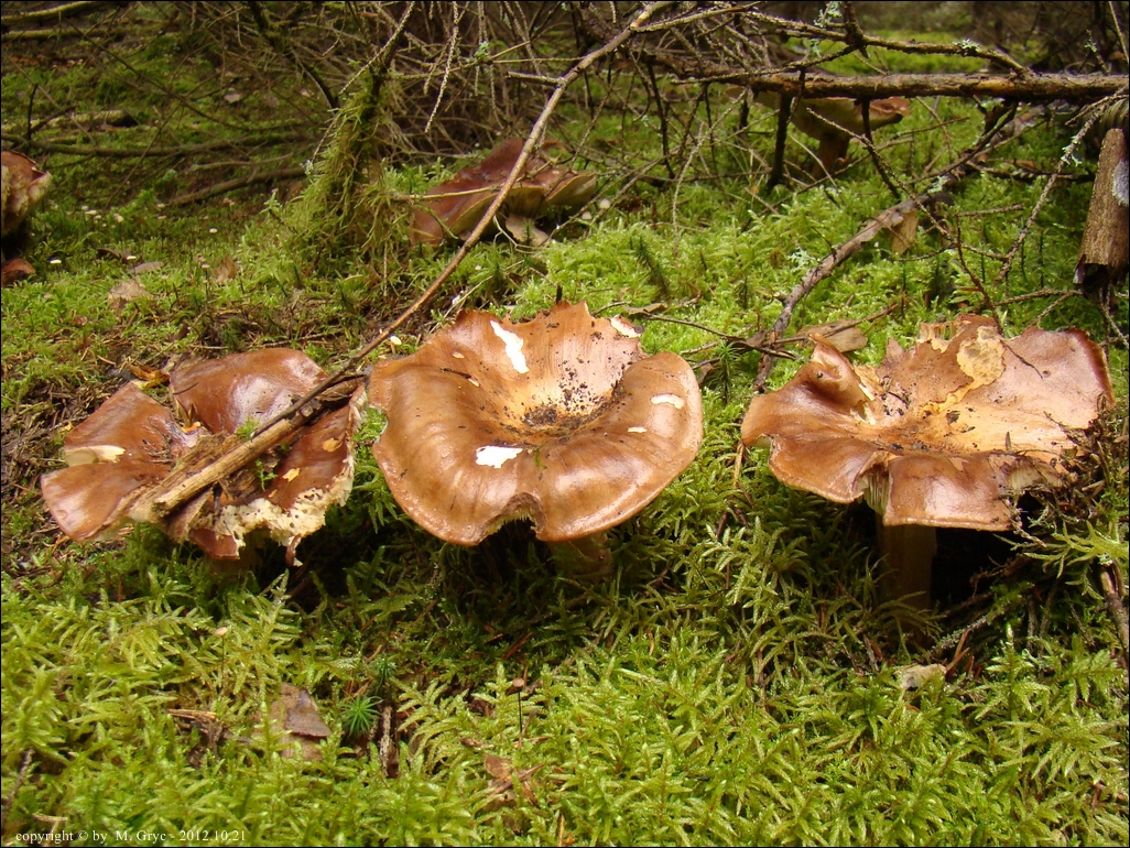 | ID: 177701 z dn. 2010.10.10 (ATPOL: GC-11) | Puszcza Knyszyńska, 2 km na wschód od Ciasnego.Pobocze drogi leśnej, pod iglastymi (sosna, świerk), na ziemi wsród mchów, podłoże piaszczyste, trzy owocniki tuż obok siebie. | |