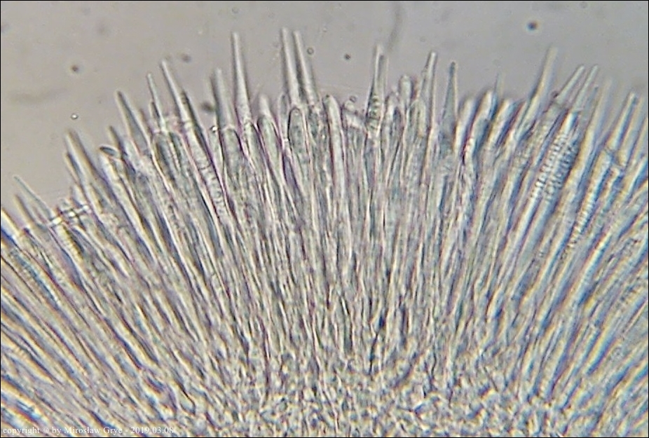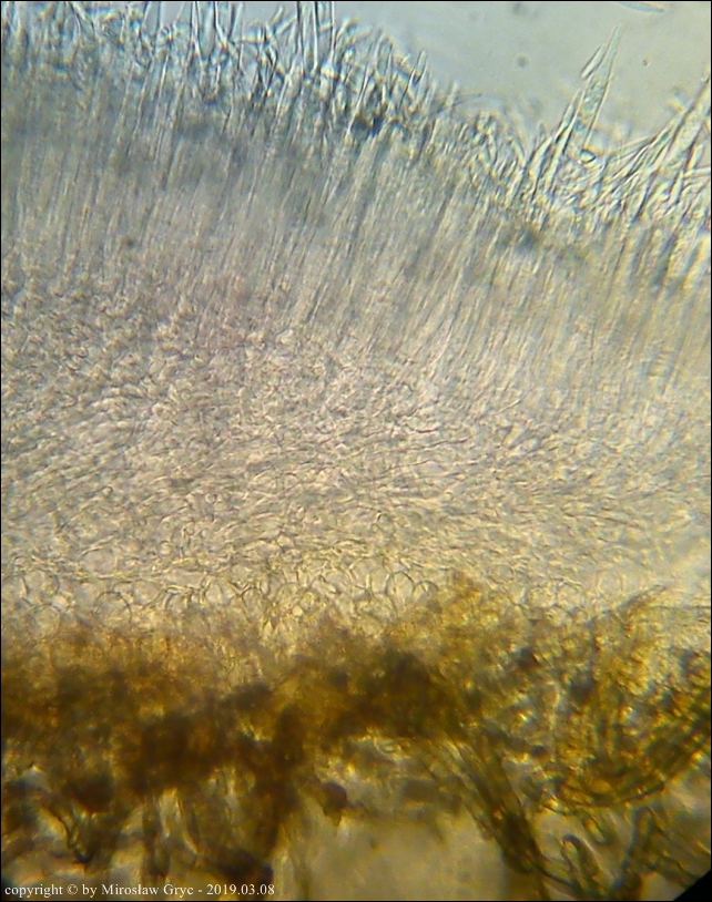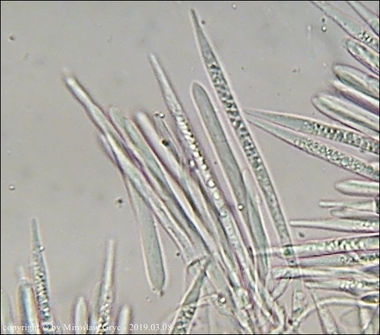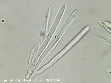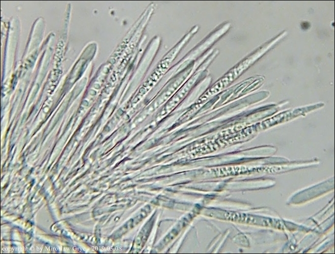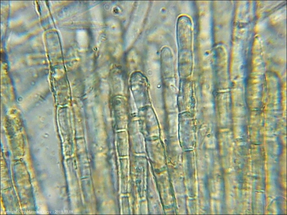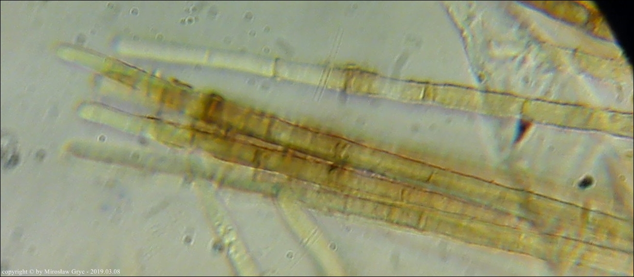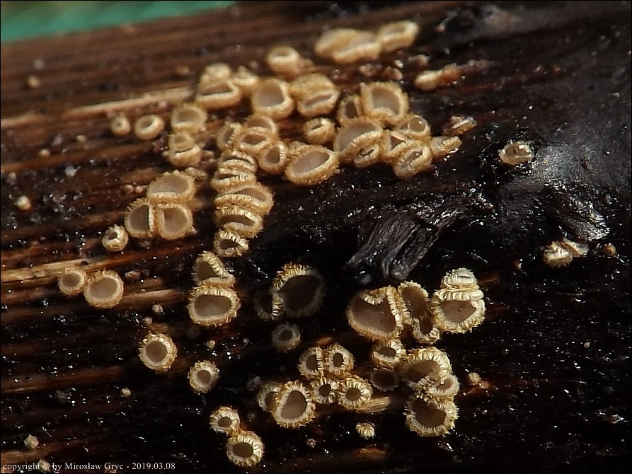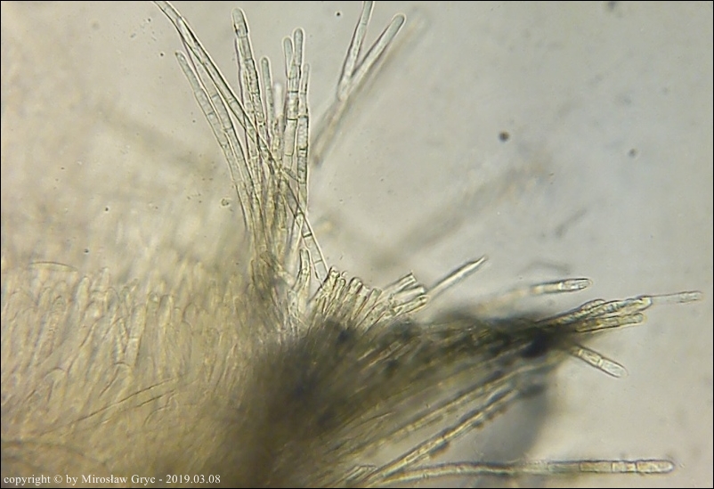 Substrat: Owocniki masowo na obumarłych pedach rdestowca ostrokończystego (Reynoutria japonica) zwanym również rdestowcem japońskim.