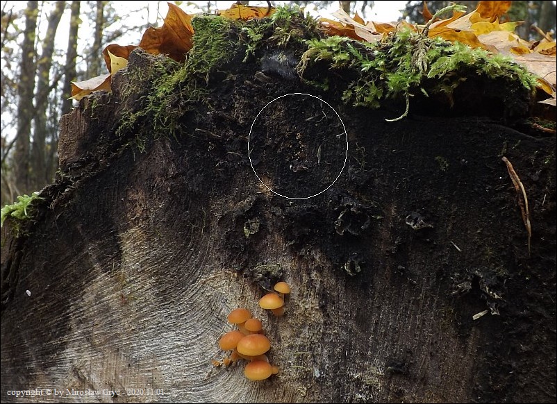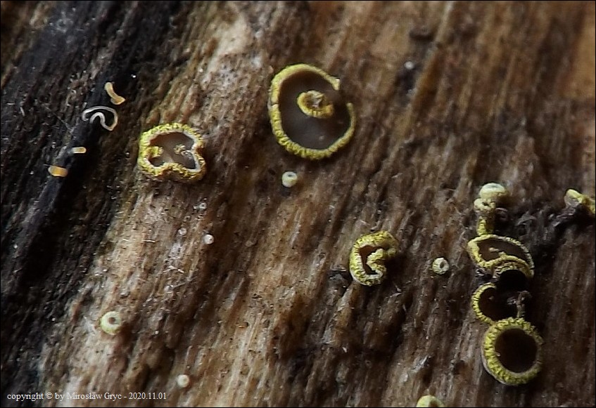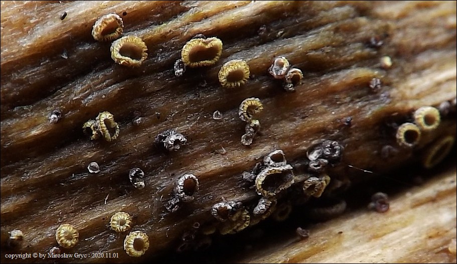 Substrat: Owocniki na drewnie topoli (Populus sp.) .