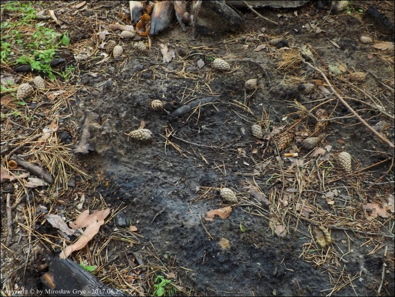 Substrat: Owocniki na węglu, dawniej palonego ogniska.