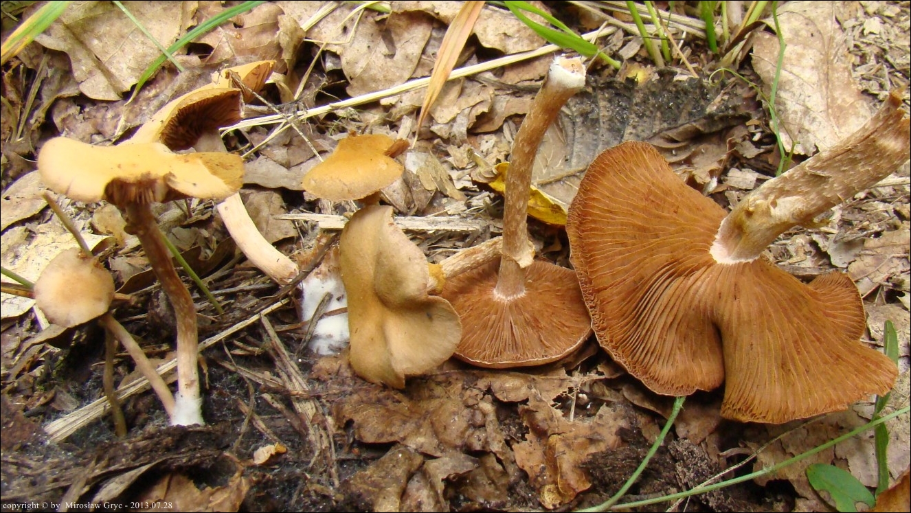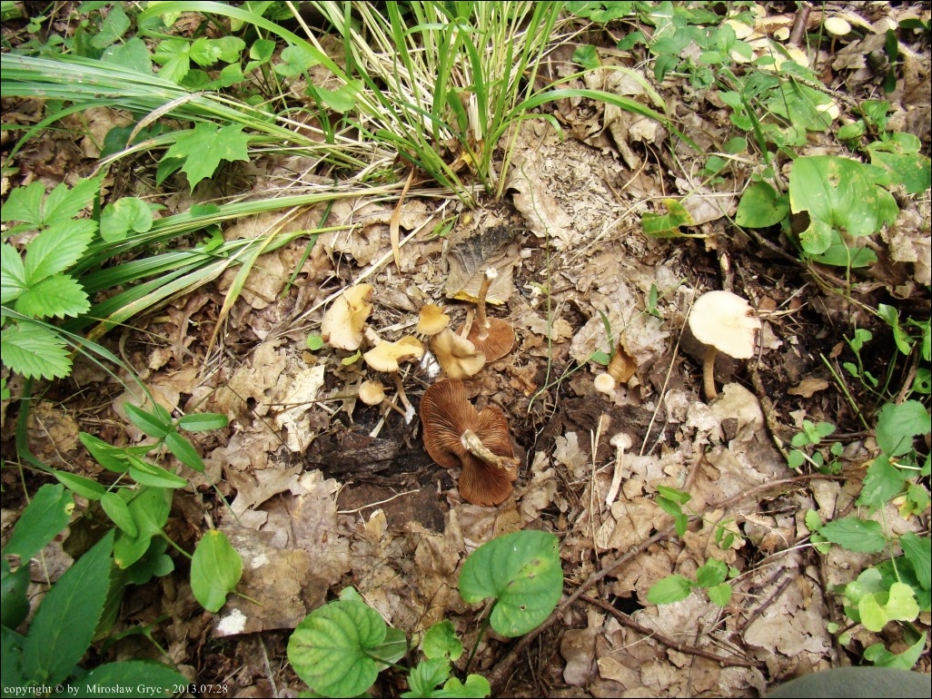 Substrat: Grabowo-dębowe obsadzenie lasu iglastego (świerk, sosna), drzewostan w średnim wieku. Owocniki wyrastały na bogatej w próchnicę ściółce.