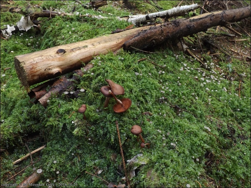 Lokalizacja: Las świerkowo-sosnowy z małą domieszką liściastych, owocniki na wdeptanym w podłoże kawałku drewienka.
