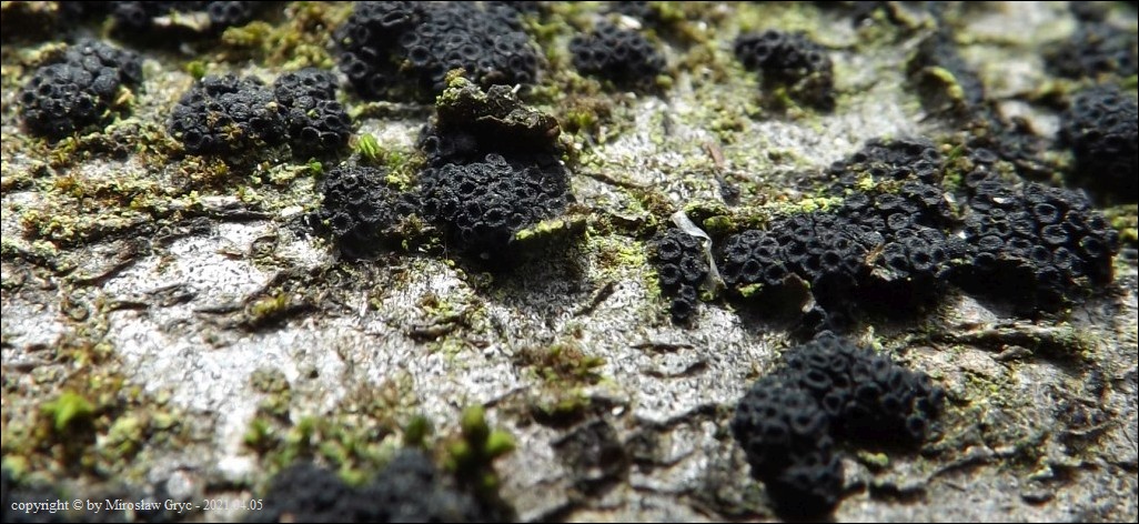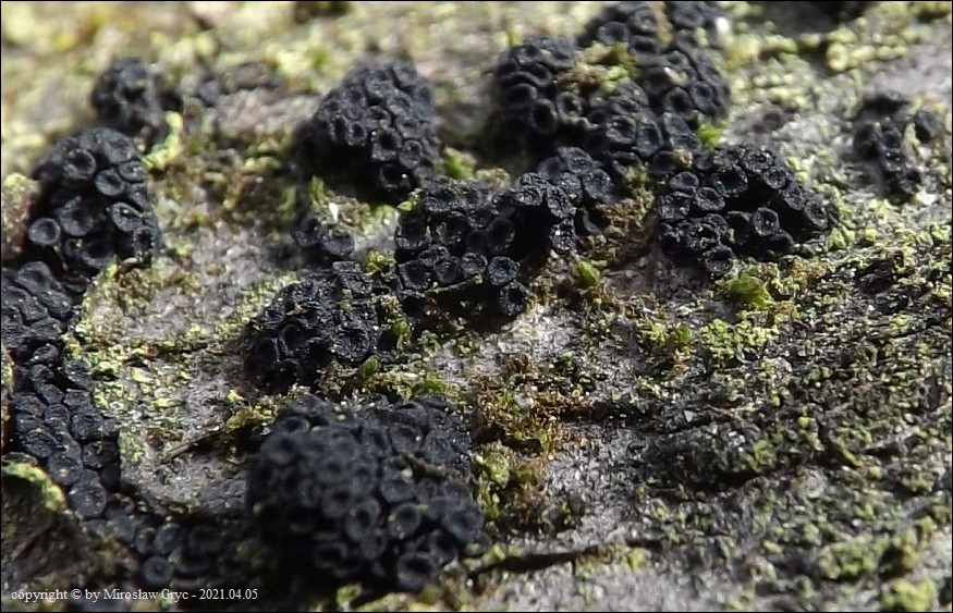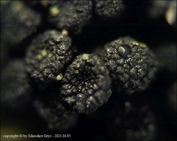 Substrat: Owocniki na martwych gałęziach czeremchy zwyczajnej (Prunus padus) .