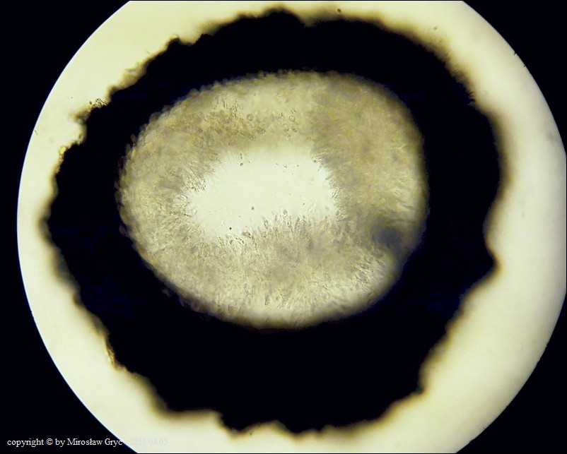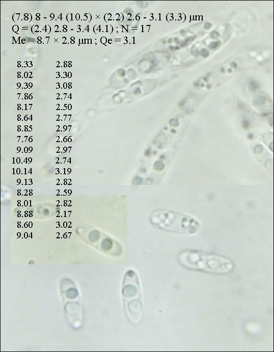 Niżej prezentowane stanowisko nie jest u mnie odosobnione. Dość często spotykam na martwych gałęziach czeremchy pospolitej ten gatunek. Wyrasta nie zawsze spod kory, rośnie również na dość silnie zbutwiałym drewnie. Cechy makroskopowe oraz mikroskopowe przemawiaja o przynależności rodzajowej do Tympanopsis. W zasadzie wszystkie cechy oprócz jednej pasują do Tympanopsis confertula. Nie mogę tej kolekcji jednak uznać za ten gatunek, ponieważ ma zbyt wąskie zarodniki. Na pewno nie jest to błąd pomiaru czy też kwestia dojrzałości owocników. Kilkakrotne pomiary na innych kolekcjach wykazują bardzo zbliżone wartości. W tej sytuacji jedynie można podejrzewać, że ten konkretny gatunek nie został jeszcze opisany? Zgodnie z najbardziej współczesną literaturą nie można mojej kolekcji również uznać za którychs z gatunków Nitschkia, chociaż identyczne kolekcje, duża ilość mykologów określa jako Nitschkia grevillii. Dla tego gatunku Nitschkia, szerokość zarodników jest zbyt duża. Również nie wszystkie cechy makroskopowe są zgodne z koncepcją tego rodzaju. Powierzchnia owocnika powinna być gładka a nie tak silnie brodawkowana. Przynajmniej tak określa wygląd owocników tego gatunku Larissa Vasilyeva która dokonała częściowej rewizji tych gatunków.Galeria zdjęć