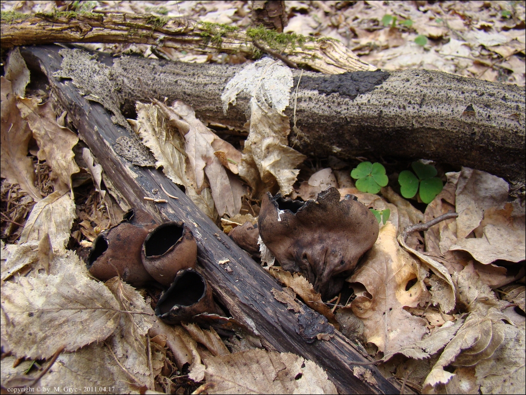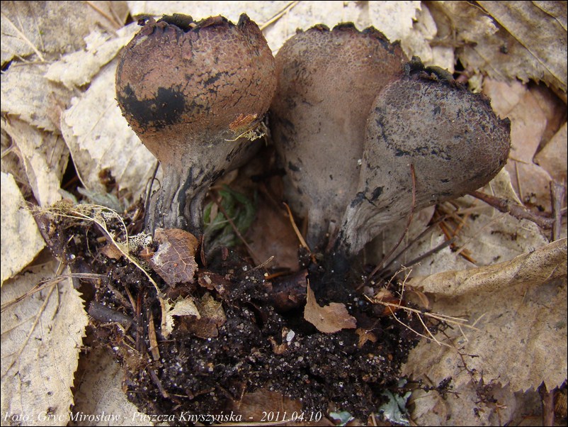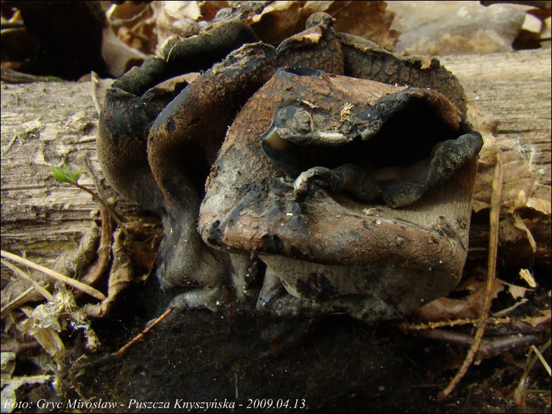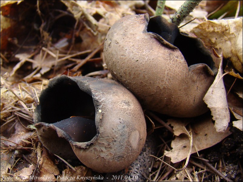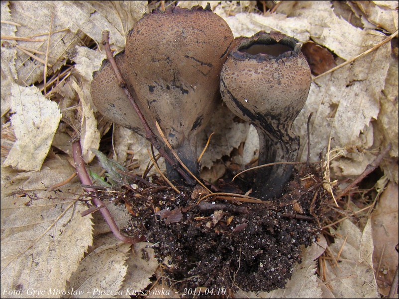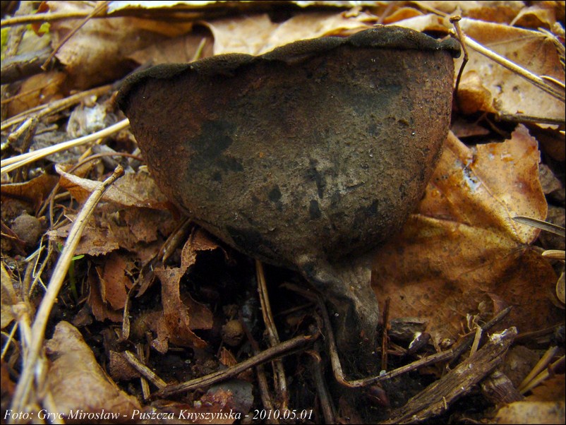 Lokalizacja: Kwiecień 2009 roku, pierwsze dwa owocniki znalezione w Puszczy Knyszyńskiej w okolicach Czołnowa (trasa Supraśl- Krynki). Rosły w pobliżu rozłożystego, starego dębu, na gałęziach zagrzebanych w ściółce. Obok występowały również graby ale podejrzewam, że gałęzie należały, właśnie do tego dębu. W 2010 również spotkałem tam te grzyby ale jak zawsze w małej ilości (2-3 szt).