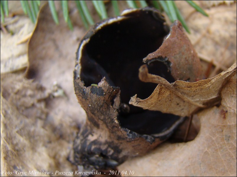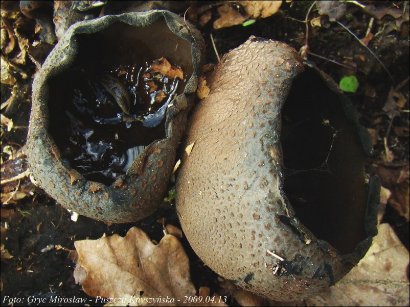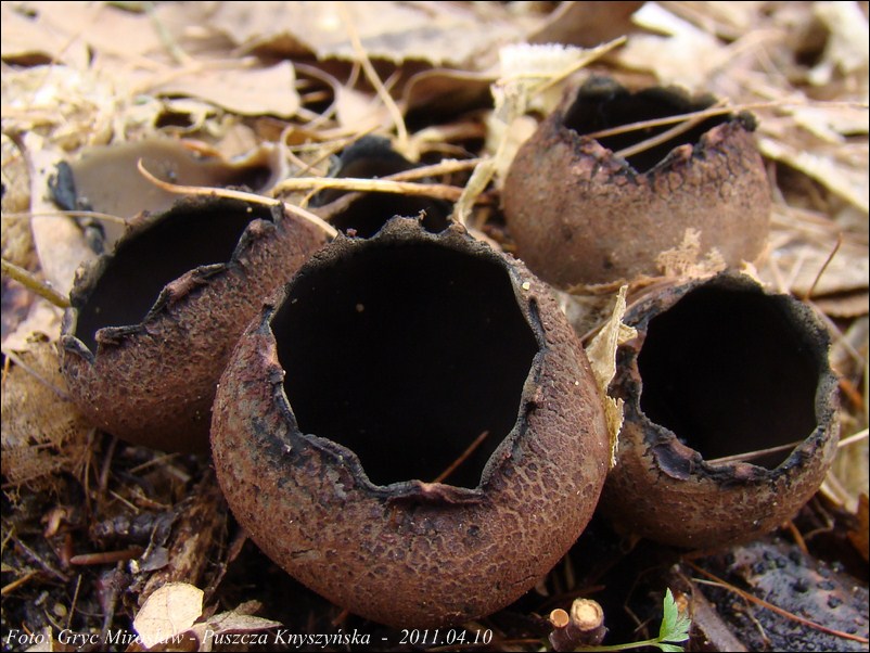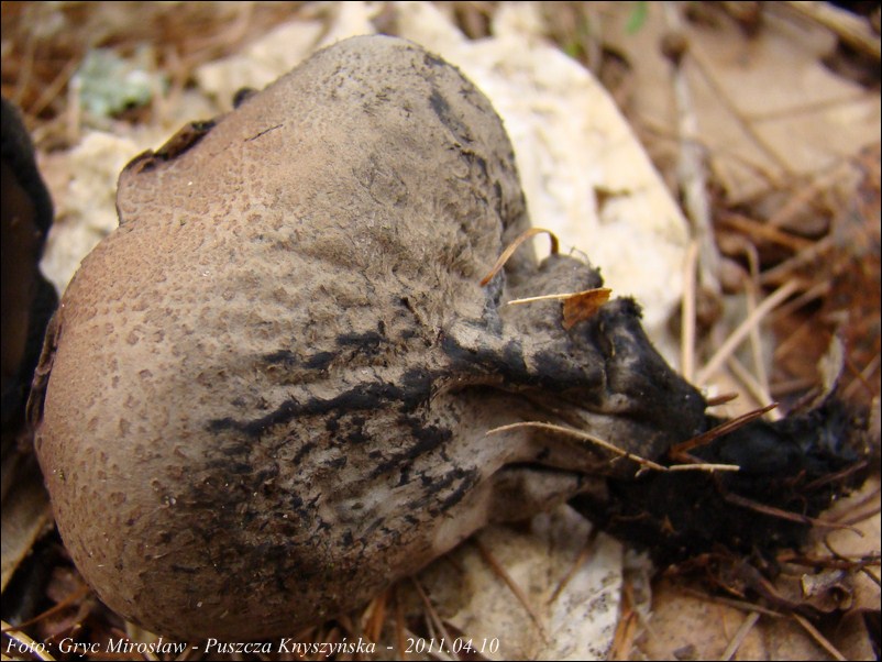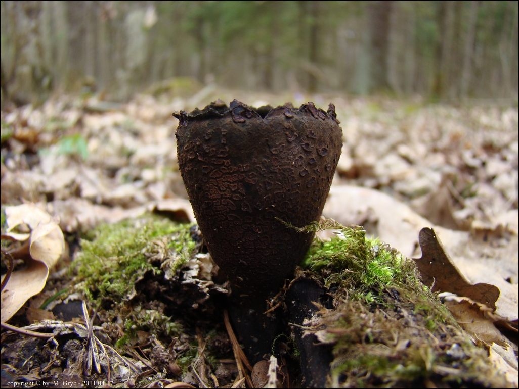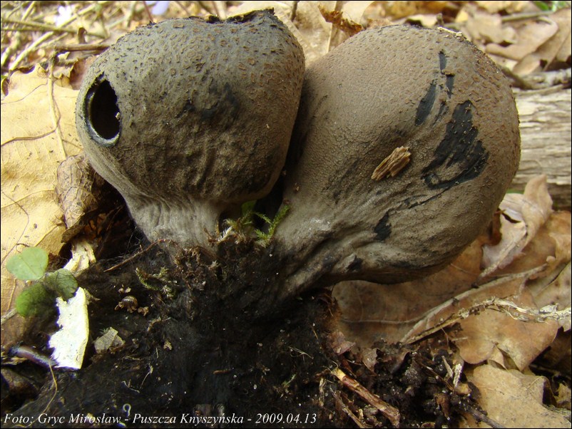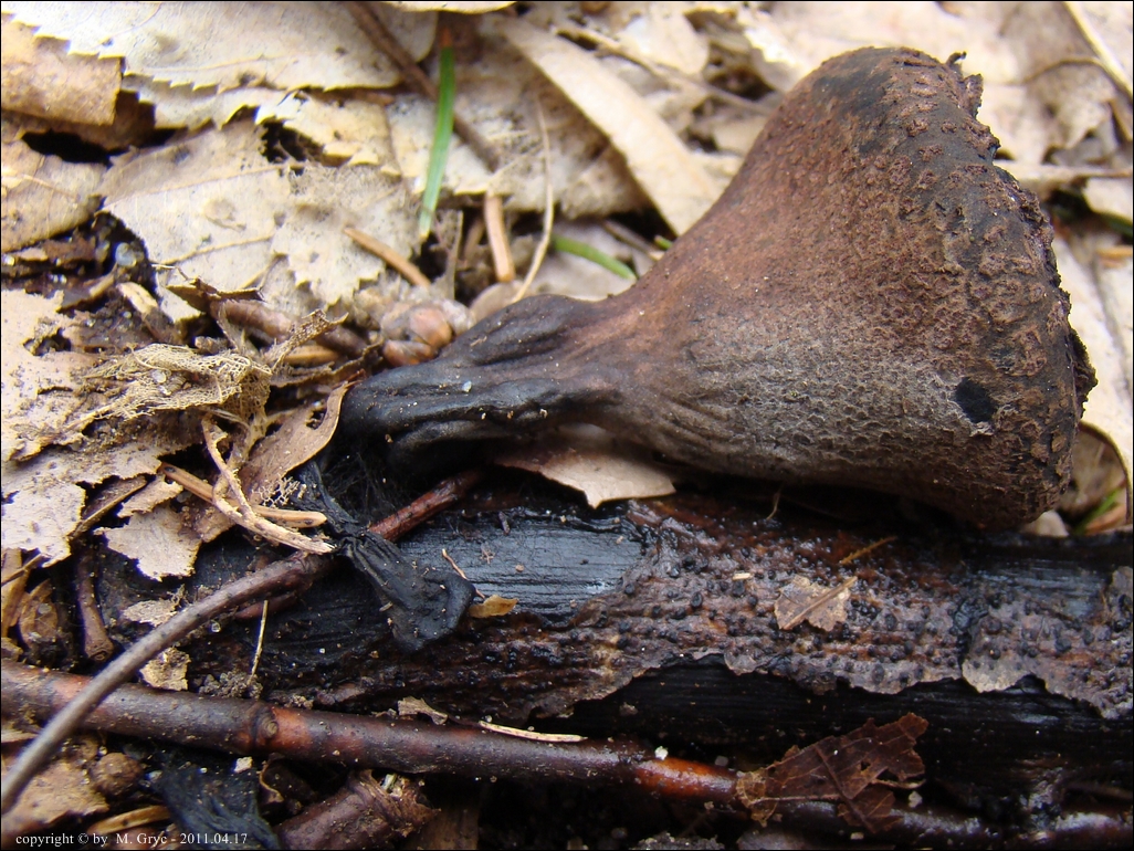 Lokalizacja: Kwiecień 2009 roku, pierwsze dwa owocniki znalezione w Puszczy Knyszyńskiej w okolicach Czołnowa (trasa Supraśl- Krynki). Rosły w pobliżu rozłożystego, starego dębu, na gałęziach zagrzebanych w ściółce. Obok występowały również graby ale podejrzewam, że gałęzie należały, właśnie do tego dębu. W 2010 również spotkałem tam te grzyby ale jak zawsze w małej ilości (2-3 szt).