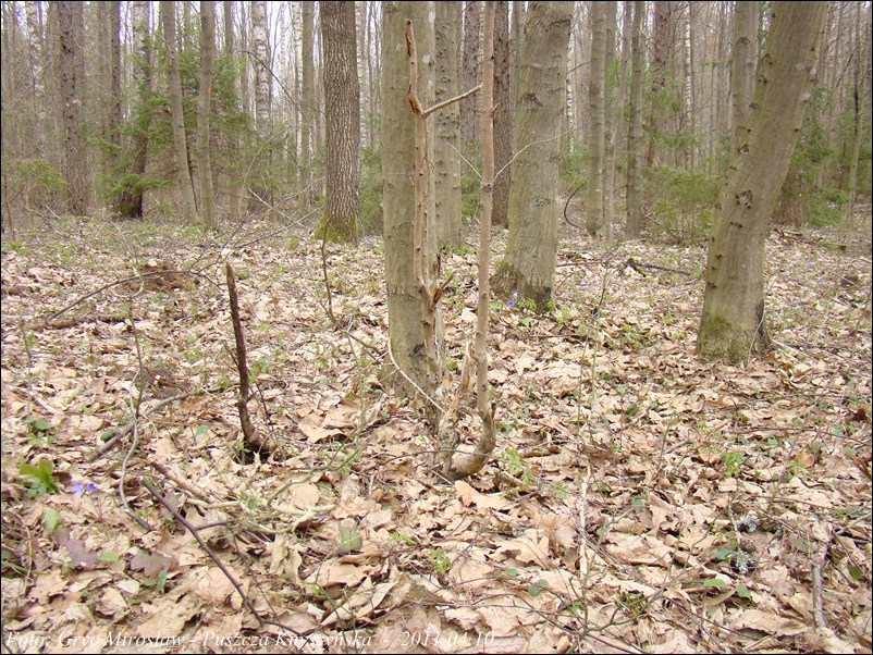 Substrat: Teren należący do leśnictwa Krasny Las. Drzewostan w przeważającej części grabowy, z rzadka tylko pojedyńcze dęby.