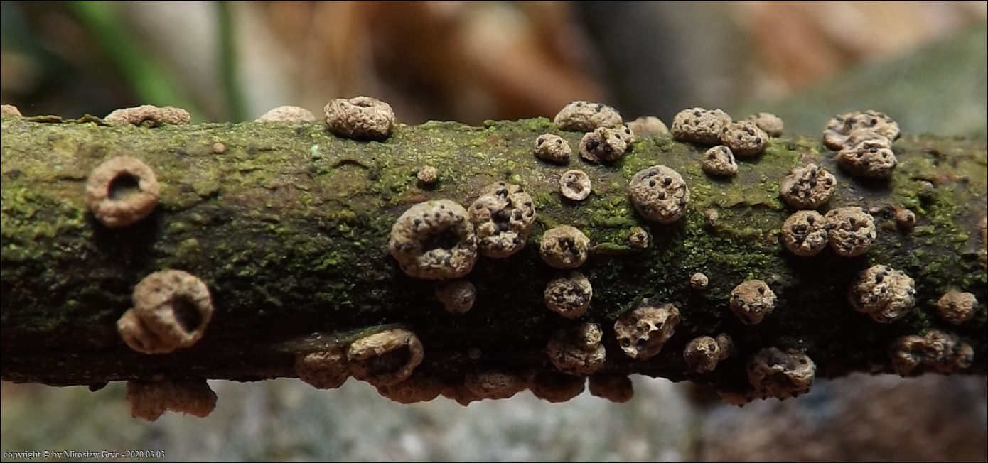 wyrastającej na martwych gałęziach leszczyny pospolitej (Corylus avellana) .