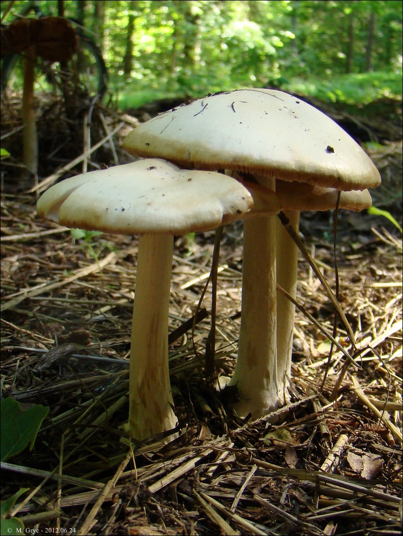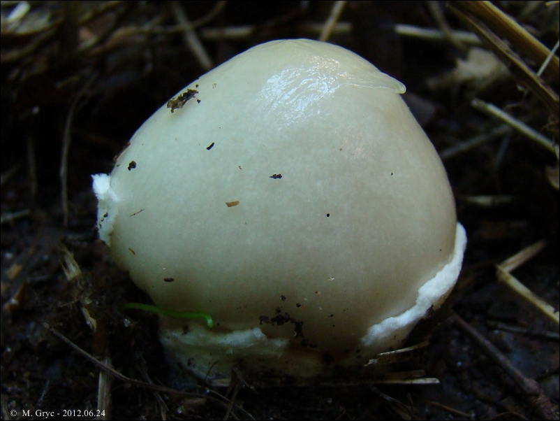 "Od niedawna V. gloiocephala jest przeniesiona do nowego rodzaju: Volvopluteus. Kilka lat temu na podstawie badań molekularnych i morfologicznych wydzielono z V. gloiocephala nowy gatunek (znany z Japonii) - Volvopluteus asiaticus, różniący się od V. gloiocephala obecnością długiego wyrostka na pleurocystydach. Cystydy owocnika z ostatniej fotki mają długie wyrostki, choć nie aż tak jak w diagnozie gatunku (autorzy podają do 15 um, tu mamy do 8-10 um)." ...