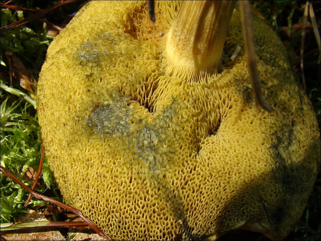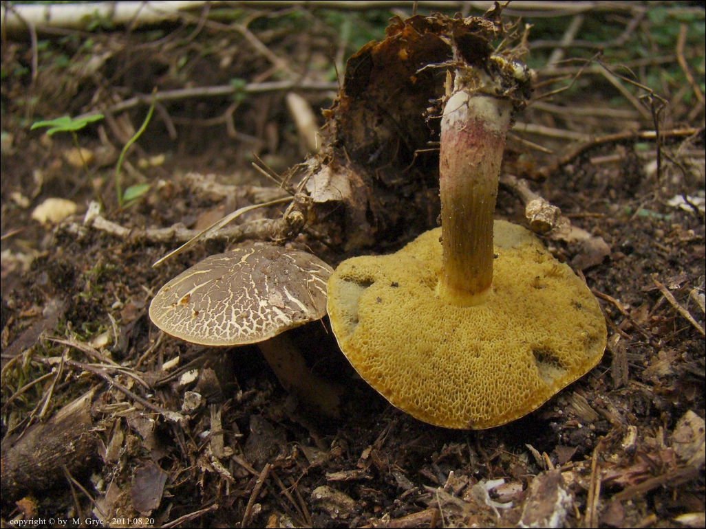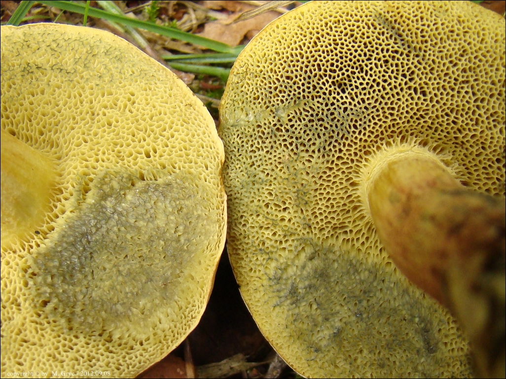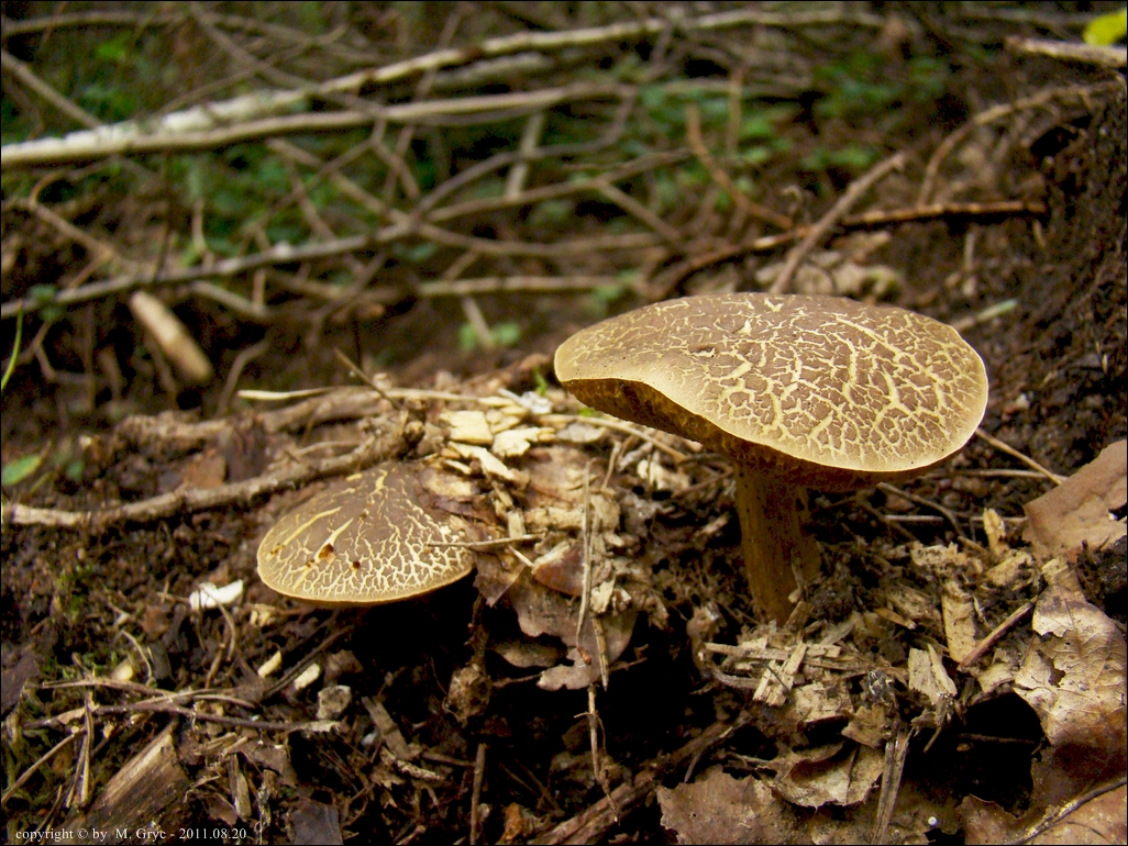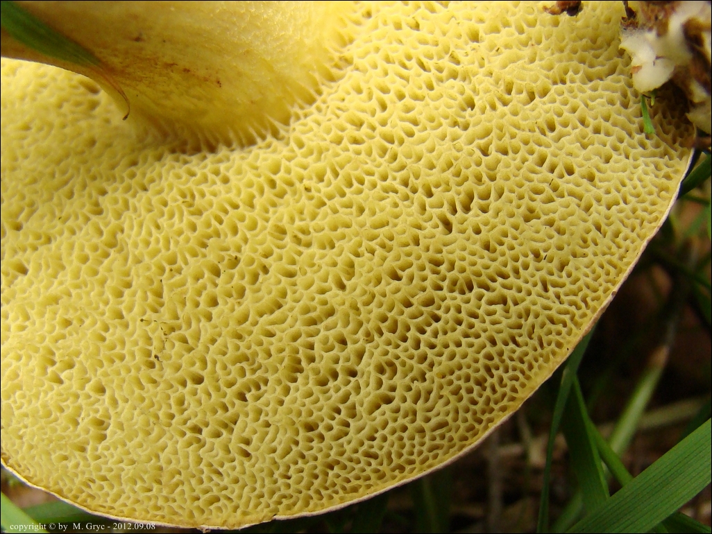 Lokalizacja: Kilka owocników rosnących na trawiastym poboczu drogi leśnej, Pólko, las z przewagą drzewostanu iglastego.