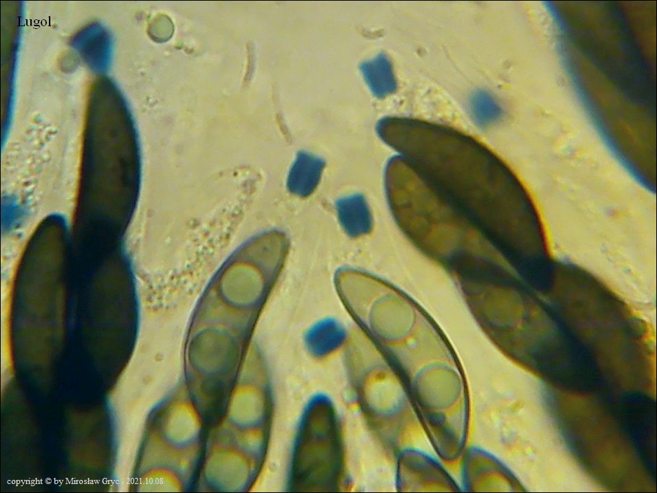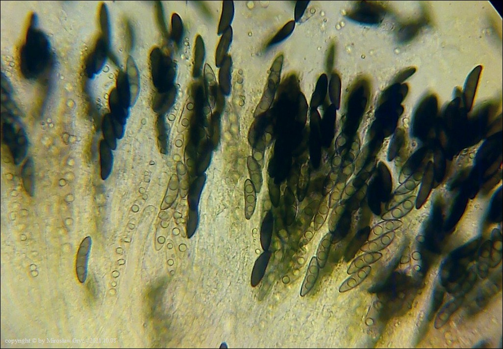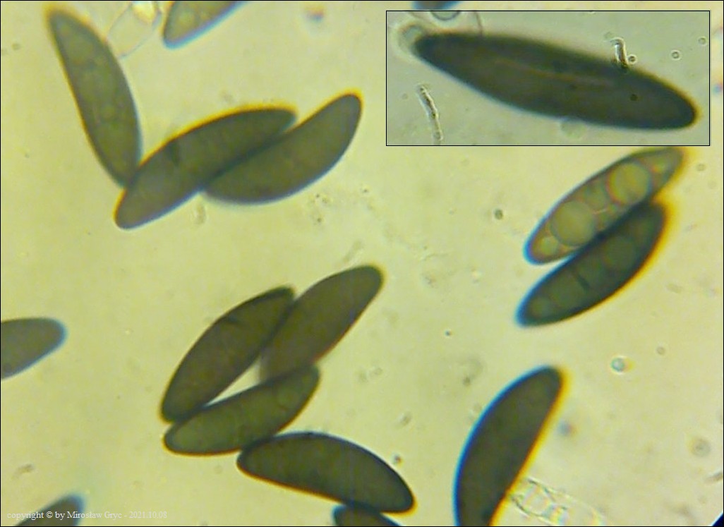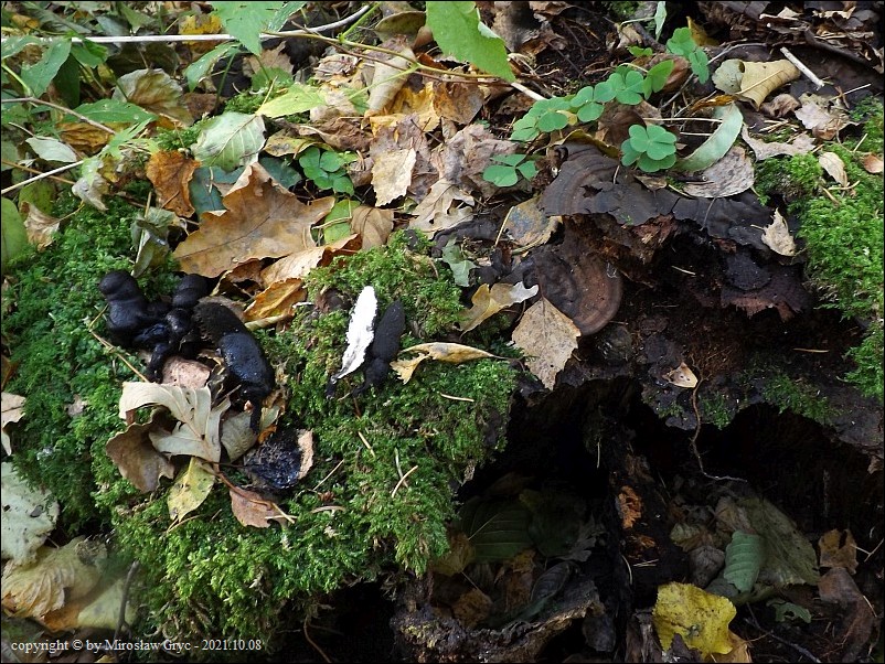 Substrat: Owocniki na butwiejącym pniu nieznanego pochodzenia.