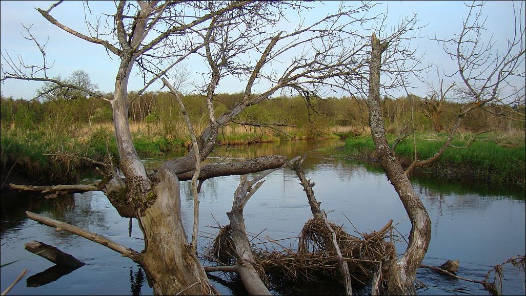 Tak też zrobię i w tym przypadku. Poprowadzę Was w inne miejsce, docierając do doliny Supraśli od strony Ogrodniczek, oczywiście poprzez rozległe nadrzeczne łaki. Dla odważnych możliwy jest nawet dojazd samochodem aczkolwiek mocno ryzykowny szczególnie na wiosnę. Droga prowadzi wzdłuż cieku wodnego w którym króluja bobry. Nory nieraz rozpostarte są pod całą szerokościa drogi i na wiosnę, szczególnie po roztopach, znaczna część zapada się. Okoliczni mieszkańcy uzupełniaja dziury czym sie da, zazwyczaj gruzem ale z tymi pracowitymi budowlańcami trudno wygrać. Lepszym środkiem lokomocji jest oczywiście rower a i nieco dłuższy spacer też nikomu nie zawadzi co ostatnio stało się dość popularne w tym kierunku. Warto więc nieco poświęcić się aby spotkać się z mieszkańcami terenów nadrzecznych, poobserować bogatą szatę roślinną a szczególnie spędzić czas aż do zmroku i zachwycać się zachodami słońca w dolinie tej niewielkiej ale jakże uroczej rzeki.