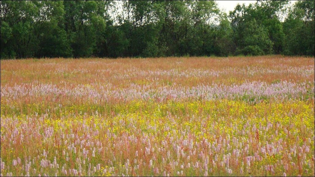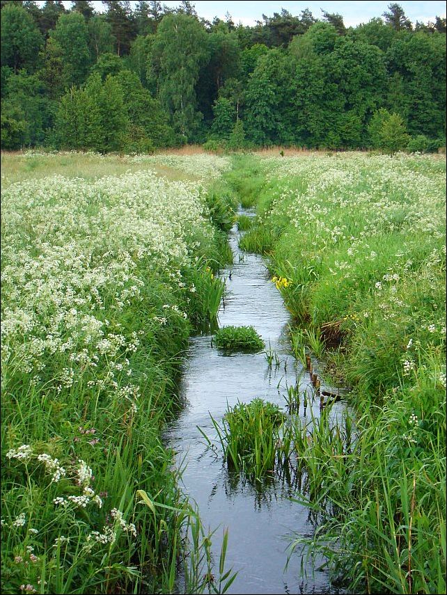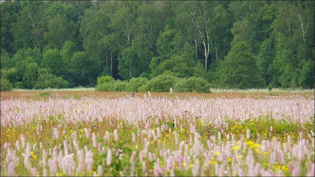 Chcąc jednak dotrzeć do rzeki, nieco pośpieszyliśmy się a przecież nie da się obojętnie przejść przez malownicze nadrzeczne, torfowe łąki. Ich barwa przez cały czas zmienia się wraz z porą roku. Są siedliskiem dla różnych zwierząt i dużej liczby gatunków ptactwa nie wspominając już o różnorodności flory. Cofnijmy się więc nieco aby przyjrzeć się nieco dokładniej tym łąkom. Niestety ale większość łąk została już zdegradowana i sztucznie obsiana. Takie łaki są ubogie, zarówno w gatunki roślin jak też i zwierząt które nie czują się na nich komfortowo. Korzystajmy wobec tego z okazji i cieszmy się, że nie wszystkie.